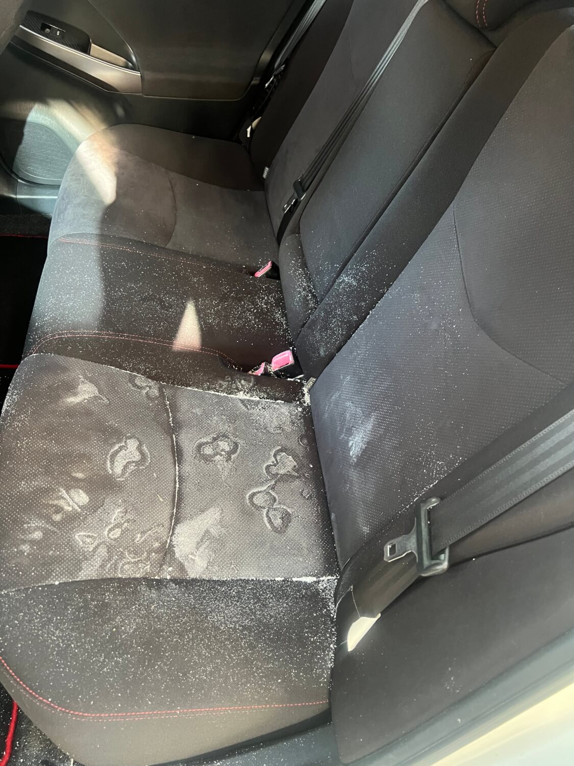 後部座席に置いていたカニを倒してしまい、解凍した汁がシートにこぼれてしまったそうです。